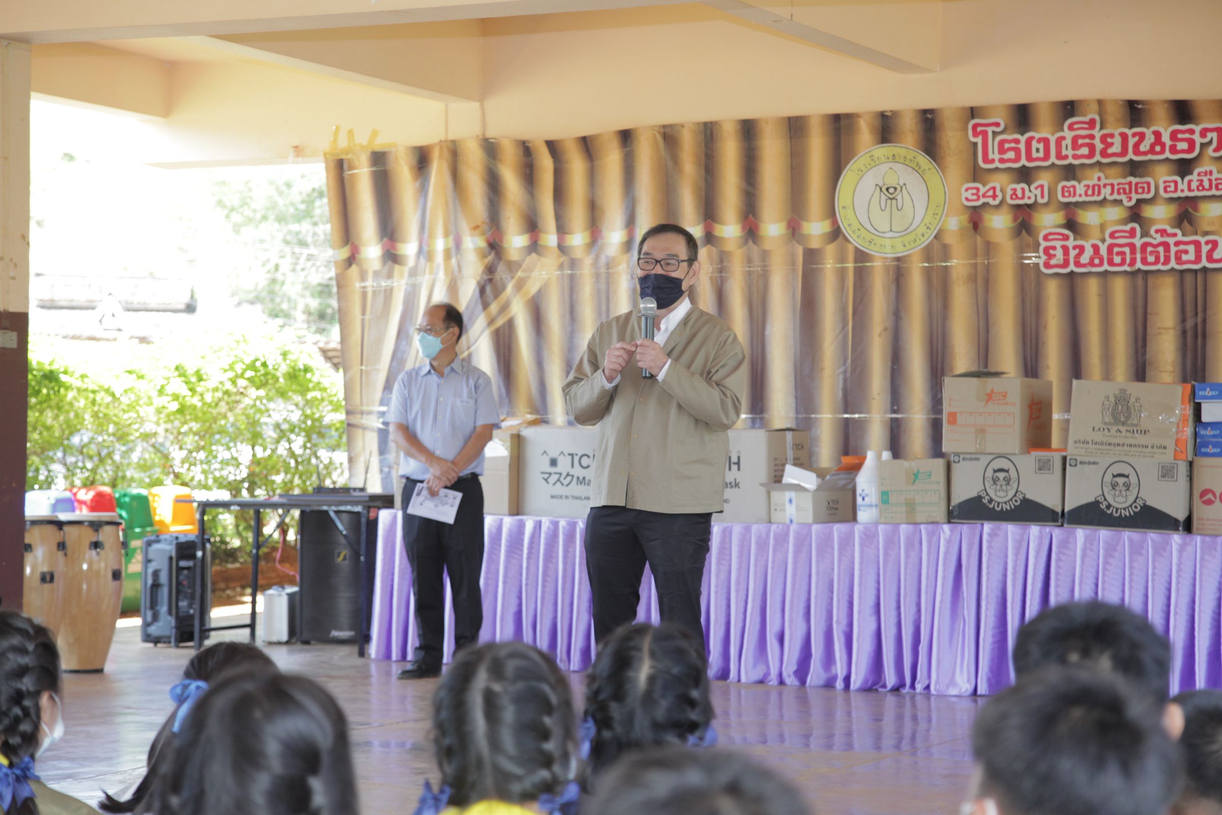 สำนักวิชาแพทยศาสตร์ มหาวิทยาลัยแม่ฟ้าหลวง (มฟล.) จัดกิจกรรมให้ความรู้ เรื่องการป้องกันการติดเชื้อไวรัสและการใช้หน้ากากอนามัย ในโครงการฉลองครบรอบ 10 ปี สำนักวิชาแพทยศาสตร์ โดยร่วมกับ สำนักวิชาทันตแพทยศาสตร์ และ โรงพยาบาลศูนย์การแพทย์มหาวิทยาลัยแม่ฟ้าหลวง เมื่อวันพุธที่ 9 กุมภาพันธ์ 2565 ณ โรงเรียนธารทิพย์ ตำบลนางแล อำเภอเมือง จังหวัดเชียงราย ซึ่งกิจกรรมเริ่มในเวลา 11.00 น. ผู้อำนวยการโรงเรียนธารทิพย์ กล่าวเปิดงาน คณบดีสำนักวิชาแพทยศาสตร์และสำนักวิชาทันตแพทยศาสตร์ มฟล. มอบหน้ากากอนามัย แอลกอฮอล์ และสิ่งสนับสนุนทางการศึกษาให้แก่โรงเรียนธารทิพย์ จากนั้นเป็นการเลี้ยงอาหารกลางวันให้แก่นักเรียนและบุคลากรโรงเรียนธารทิพย์