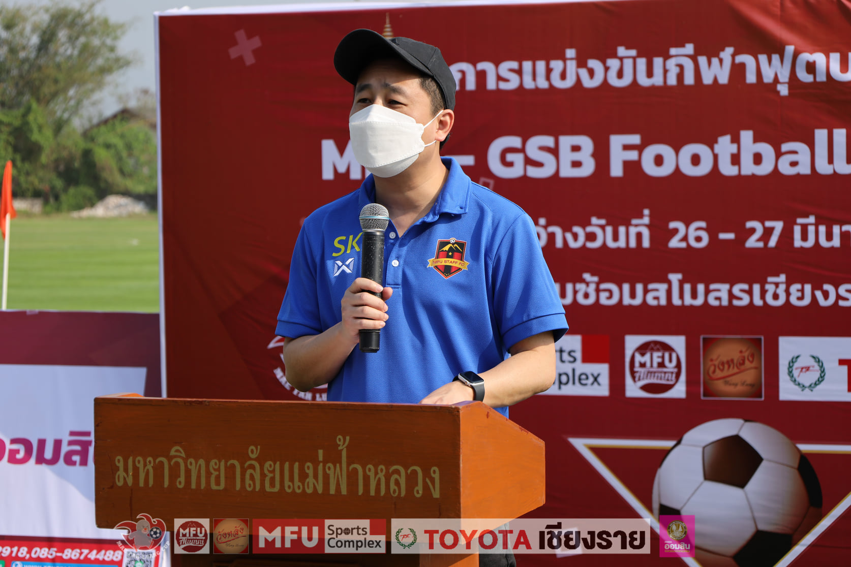 ศูนย์กีฬา มหาวิทยาลัยแม่ฟ้าหลวง (มฟล.) ร่วมกับ ธนาคารออมสิน บริษัท โตโยต้า เชียงราย จำกัด สมาคมศิษย์เก่ามหาวิทยาลัยแม่ฟ้าหลวง และร้านวังหลัง จัดการแข่งขันฟุตบอล 7 คน MFU-GSB Football Cup ครั้งที่ 1 ระหว่างวันที่ 26-27 มีนาคม 2565 ณ สนามซ้อมฟุตบอลสโมสรเชียงราย ยูไนเต็ด เพื่อเป็นการส่งเสริมสุขภาพและความสามัคคี มีทีมเข้าร่วมแข่งขัน จำนวน 23 ทีม จากจังหวัดเชียงรายและใกล้เคียง โดยมี ผศ.สุชิน กฤตลักษณ์วงศ์ ผู้ช่วยอธิการบดี มฟล. เป็นประธานในพิธีเปิด นายสมยศ จันทาพูน รักษาการแทนหัวหน้าศูนย์กีฬา มฟล. กล่าวรายงาน และยังมีนักศึกษาจากสาขาวิชาวิทยาศาสตร์การกีฬาและสุขภาพ สำนักวิชาวิทยาศาสตร์สุขภาพ มฟล. ร่วมเป็นสตาร์ฟ และโรงพยาบาลเชียงรายประชานุเคราะห์สนับสนุนหน่วยพยาบาล