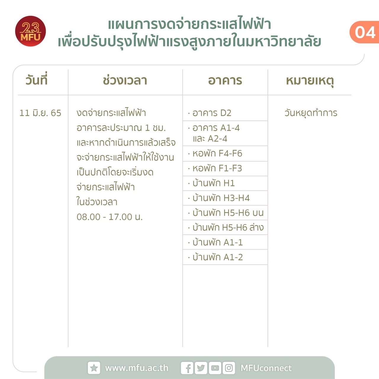 เพื่อให้การดำเนินงานเป็นไปด้วยความเรียบร้อย จึงขอแจ้งงดจ่ายกระแสไฟฟ้าตามแผนการดำเนินการฯ ดังกล่าวเพื่อความปลอดภัยของผู้ปฏิบัติงาน ซึ่งอาจส่งผลให้ไม่ได้รับความสะดวก จึงขออภัยมา ณ ที่นี้