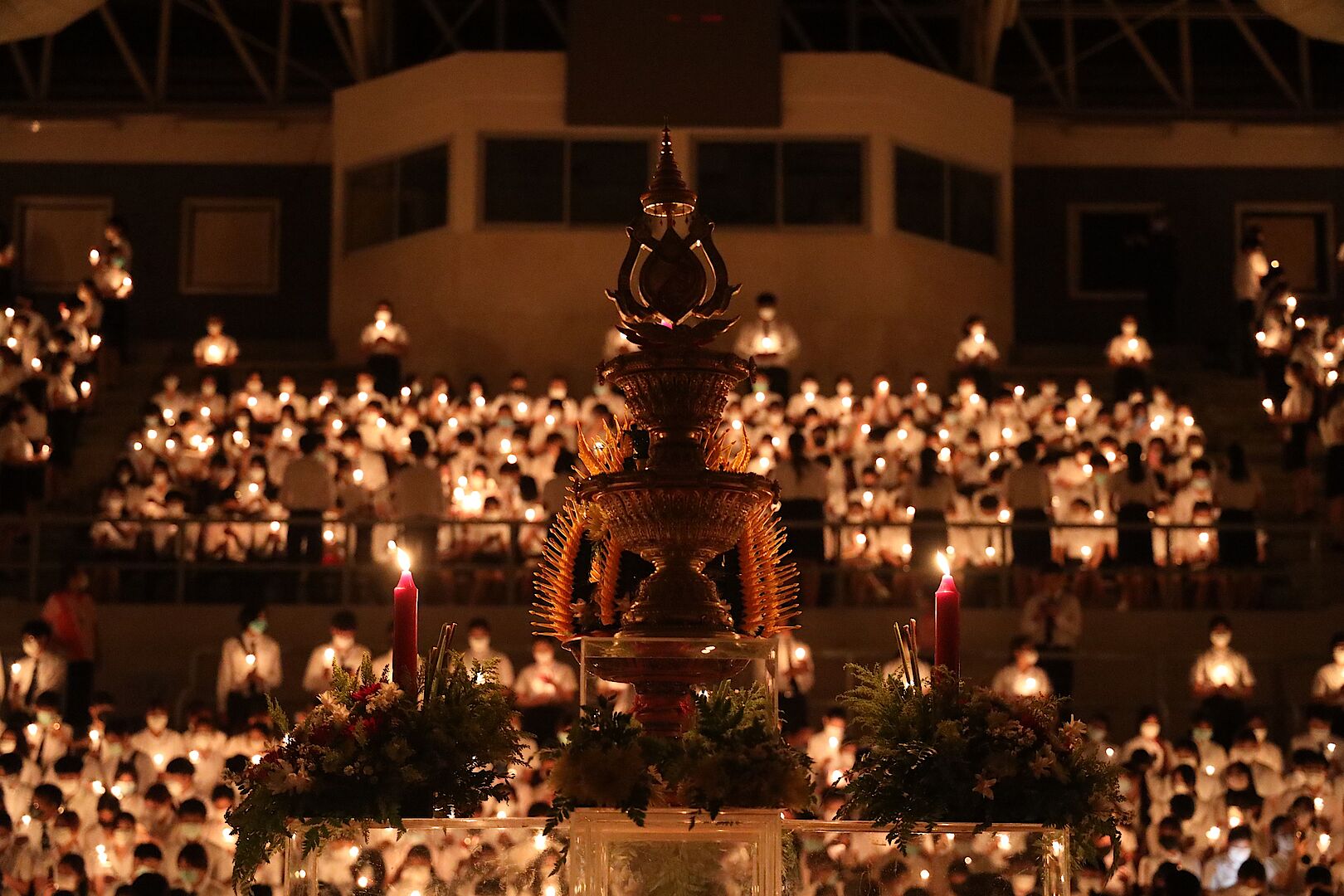 แสงเทียนที่จุด คล้ายเป็นคำปรารถนาดีจากรุ่นพี่เพื่อบอกว่า “ขอให้วิชาความรู้ที่ได้จากมหาวิทยาลัยแห่งนี้ เปรียบเป็นแสงสว่างส่องนำทางให้รุ่นน้อง ได้เดินไปสู่เส้นทางที่ดีงาม”