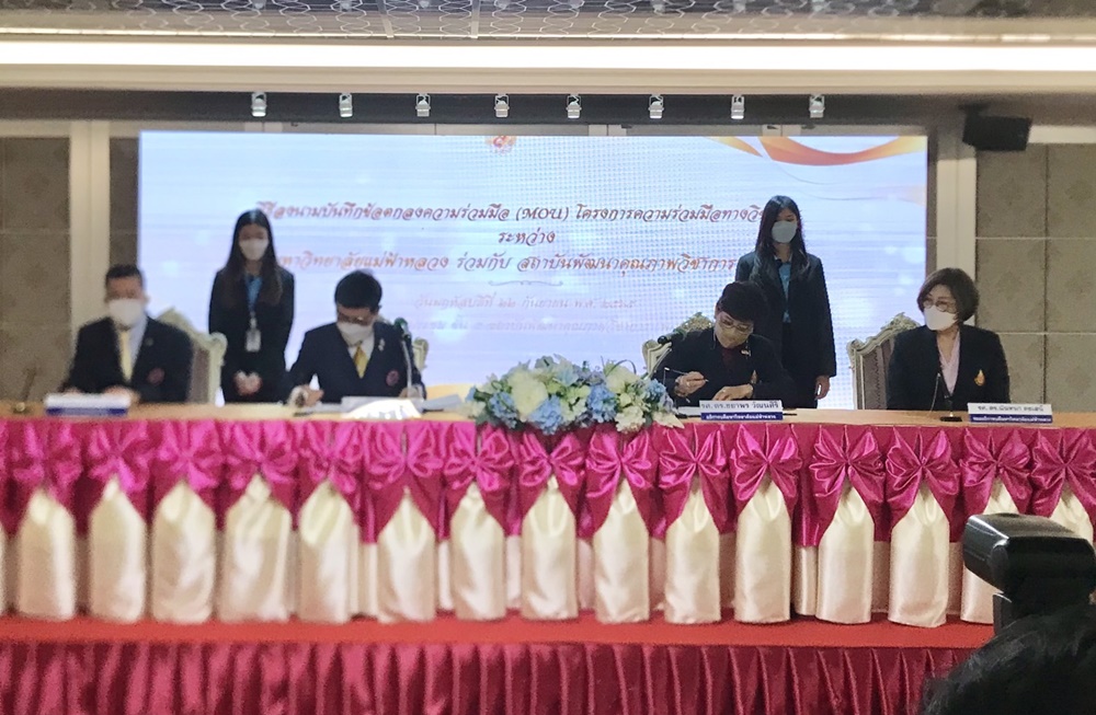 เมื่อวันที่ 22 กันยายน 2565 ที่ ห้องประชุม ชั้น 5 สถาบันพัฒนาคุณภาพวิชาการ มีพิธีบันทึกข้อตกลงความร่วมมือ (MOU)ทางวิชาการระหว่างมหาวิทยาลัยแม่ฟ้าหลวง(มฟล.) กับ สถาบันพัฒนาคุณภาพวิชาการ(พว.) โดย รศ.ดร.ชยาพร วัฒนศิริ อธิการบดีมหาวิทยาลัยแม่ฟ้าหลวง กล่าวว่า มฟล.เป็นมหาวิทยาลัยรุ่นใหม่เป็นมหาวิทยาลัยที่มุ่งมั่นตามพระปณิธานของสมเด็จย่า ในการปลูกป่าสร้างคน ดูแลสิ่งแวดล้อม และช่วยเหลือประเทศชาติในด้านต่าง ๆ ซึ่งการสร้างคนของ มฟล.ก็ตรงกับงานของ พว.ที่มีจุดมุ่งหมายในการสร้างให้คนไทยมีคุณภาพชีวิตที่ดี มีการศึกษาที่มีมาตรฐานและคุณภาพที่ถึงพร้อม คือพร้อมที่จะทำงานไม่เพียงในประเทศแต่เป็นระดับนานาชาติ ดังนั้นการทำความร่วมมือในวันนี้เชื่อว่าจะช่วยให้การทำงานของทั้งสองสถาบันสามารถดำเนินไปได้อย่างมีคุณภาพและชัดเจน ที่สำคัญจะสามารถร่วมกันสร้างการเรียนรู้สมัยใหม่เพื่อเผยแพร่ออกสู่สังคมอย่างไม่มีข้อจำกัด