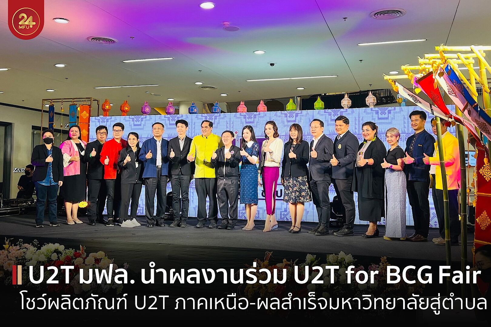 มหาวิทยาลัยแม่ฟ้าหลวง (มฟล.) นำโดย อาจารย์ ดร.ณัฐวุฒิ ยอดสุวรรณ ผู้อำนวยการศูนย์บริการวิชาการ หัวหน้าโครงการ U2T for BCG Fair มหาวิทยาลัยแม่ฟ้าหลวง พร้อมเจ้าหน้าที่ศูนย์บริการวิชาการ เข้าร่วมพิธีเปิดกิจกรรม U2T for BCG Fair ภาคเหนือ โดย กระทรวงการอุดมศึกษา วิทยาศาสตร์ วิจัยและนวัตกรรม (อว.) เมื่อวันจันทร์ที่ 10 ตุลาคม 2565 ณ ศูนย์การค้าเซ็นทรัลเฟสติวัลเชียงใหม่ โดยมี ดร.ดนุช ตันเทอดทิตย์ เลขานุการรัฐมนตรีว่าการกระทรวงการอุดมศึกษา วิทยาศาสตร์ วิจัย และนวัตกรรม (อว.) เป็นประธานในพิธี นายพันธุ์เพิ่มศักดิ์ อารุณี ผู้เชี่ยวชาญเฉพาะด้านพัฒนาทรัพยากรบุคคล กรรมการและผู้ช่วยเลขานุการ คณะกรรมการบริหารโครงการยกระดับเศรษฐกิจและสังคมรายตำบลแบบบูรณาการ (U2T) กล่าวรายงานวัตถุประสงค์การจัดงาน หลังจากนั้นประธานในพิธีพร้อมด้วยผู้บริหารกระทรวงเยี่ยมชมบูธของแต่ละมหาวิทยาลัย ในการนี้ มหาวิทยาลัยแม่ฟ้าหลวงได้นำผลิตภัณฑ์ที่ได้รับการพัฒนาและต่อยอดจากนักวิจัยของสำนักวิชาและหน่วยงานต่าง ๆ จากการดำเนินโครงการ U2T for BCG ร่วมกับ 27 ตำบลในจังหวัดเชียงราย เข้าร่วมจัดแสดงและจำหน่ายในงานนี้ด้วย