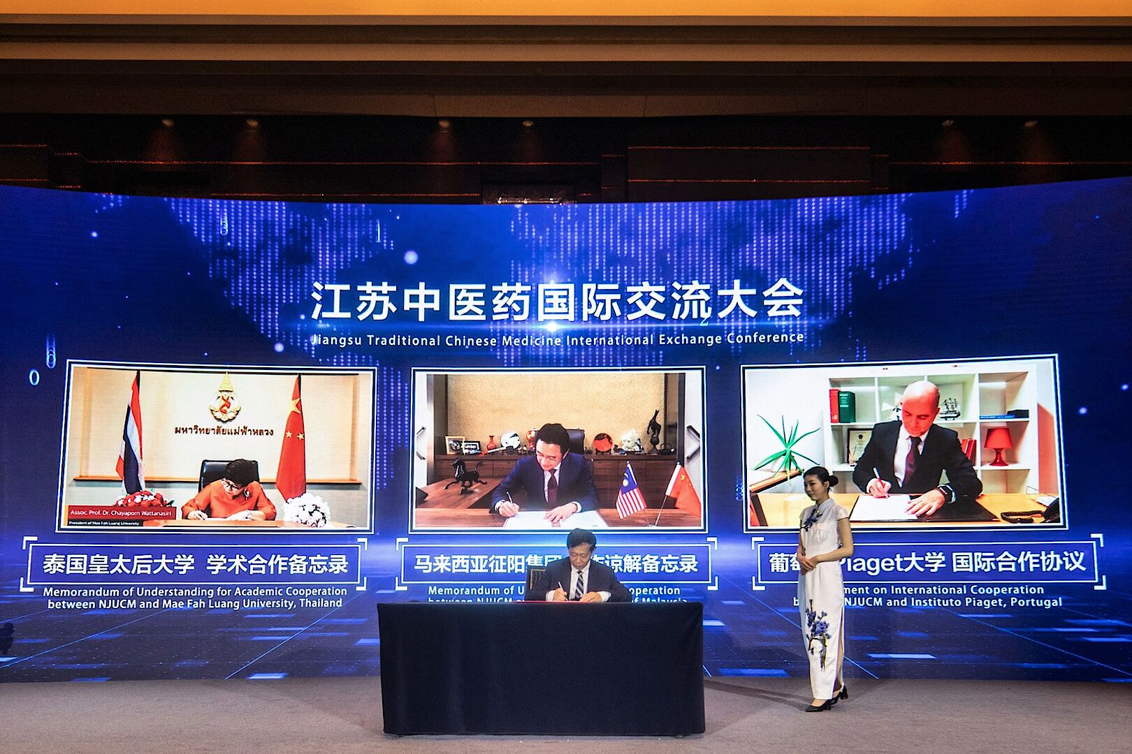 เมื่อวันจันทร์ที่ 21 พฤศจิกายน 2565 รศ.ดร.ชยาพร วัฒนศิริ อธิการบดีมหาวิทยาลัยแม่ฟ้าหลวง ได้ลงนามในบันทึกความเข้าใจกับมหาวิทยาลัย Nanjing University of Chinese Medicine สาธารณรัฐประชาชนจีน ในงาน Jiangsu Traditional Chinese Medicine International Exchange Conference ที่จัดขึ้น ณ มณฑลเจียงซู สาธารณรัฐประชาชนจีน โดย Foreign Affairs Office of Jiangsu Provincial People's Government และ Jiangsu Province Department of Health เพื่อประสานความร่วมมือในด้านการเรียนการสอน ด้านวิชาการ และด้านการวิจัยของหลักสูตรการแพทย์แผนจีนบัณฑิต โดยมีเป้าหมายร่วมกันเพื่อพัฒนาศาสตร์การแพทย์แผนจีนในประเทศไทยต่อไป ภายใต้การดำเนินของสำนักวิชาการแพทย์บูรณาการ มหาวิทยาลัยแม่ฟ้าหลวง
