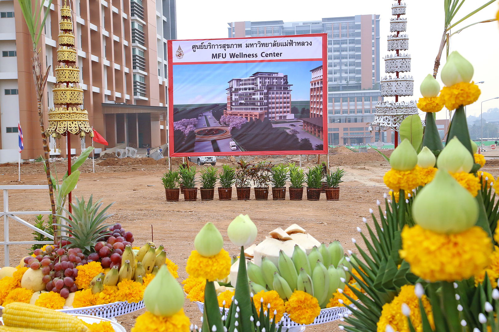 เมื่อวันที่ 27 มีนาคม 2561 ที่ผ่านมา รศ.ดร.วันชัย ศิริชนะ อธิการบดี มหาวิทยาลัยแม่ฟ้าหลวง (มฟล.) ได้เป็นประธานในพิธีเบิกปฐพีอาคารศูนย์บริการสุขภาพมหาวิทยาลัยแม่ฟ้าหลวง (MFU Wellness Center) โดยมีพระเทพปริยัติมงคล (หลวงปู่โอภาส โอภาโส) เจ้าอาวาสวัดจองคำ จ.ลำปาง เดินทางมาเป็นประธานฝ่ายสงฆ์ พร้อมด้วยพระสงฆ์สมณศักดิ์จำนวน 8 รูป เจริญพระพุทธมนต์ในพิธี ในการนี้ได้รับเกียรติจากหน่วยงานราชการ รัฐวิสาหกิจ และเอกชน พร้อมด้วยคณะผู้บริหาร พนักงาน และนักศึกษาเข้าร่วมพิธีเป็นจำนวนมาก