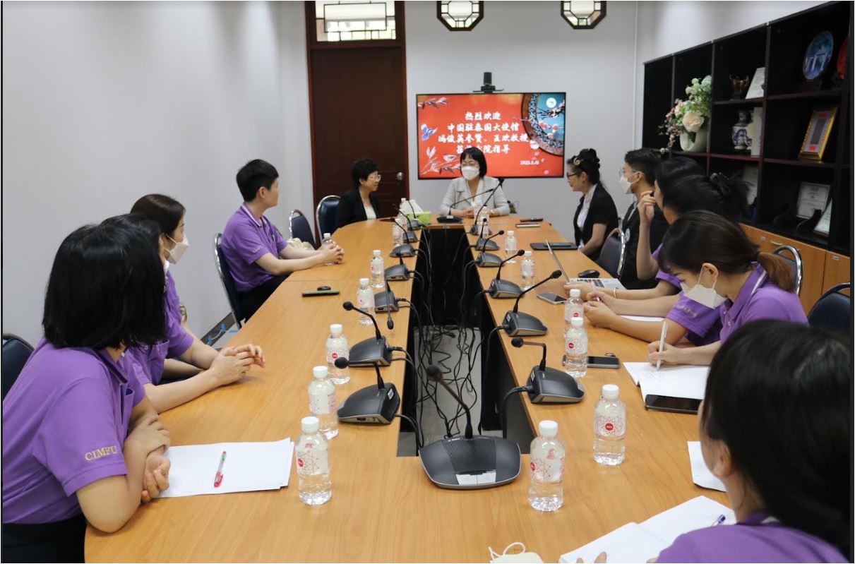 ผู้ช่วยศาสตราจารย์ ดร.มัชฌิมา นราดิศร รักษาการแทนอธิการบดี พร้อมด้วย ดร.ธีรภาพ ปรีดีพจน์ คณบดีสำนักวิชาจีนวิทยา และ ดร.พรภวิษย์ หล้าพีระกุล รักษาการแทนผู้อำนวยการศูนย์ภาษาและวัฒนธรรมจีนสิรินธร ให้การต้อนรับ ผู้แทนจากสถานเอกอัครราชทูตจีนประจำประเทศไทย Mrs. Feng Junying, Counselor of Education and Mrs.Wang Huan, First Secretary เพื่อพบปะหารือเกี่ยวกับการสร้างความเข้าใจเกี่ยวกับความเป็นอยู่ของนักศึกษาแลกเปลี่ยนชาวจีนที่กำลังศึกษามหาวิทยาลัยภาคเหนือของประเทศไทย รวมถึงเข้าหารือกับผู้ดูแลนักศึกษาแลกเปลี่ยนชาวจีนกับส่วนพัฒนาความสัมพันธ์ระหว่างประเทศ และตัวแทนนักศึกษาแลกเปลี่ยนชาวจีนของมหาวิทยาลัยแม่ฟ้าหลวง พร้อมกันนี้ได้แสดงความยินดีแก่อธิการบดีในการเข้ารับตำแหน่งใหม่ ที่ห้องรับรอง อาคารวันชัย ศิริชนะ เมื่อวันที่ 16 พฤษภาคม 2566 ที่ผ่านมา