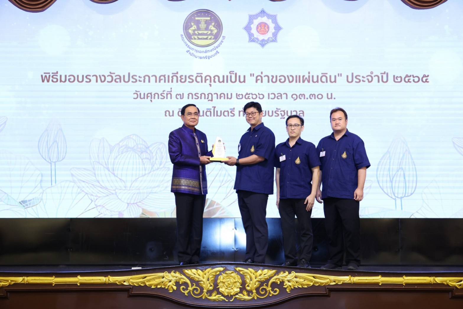 ทั้งนี้ พลเอก ประยุทธ์ จันทร์โอชา นายกรัฐมนตรีและรัฐมนตรีว่าการกระทรวงกลาโหม เป็นประธานมอบรางวัลประกาศเกียรติคุณเป็น “ค่าของแผ่นดิน” ประจำปี 2565 ให้แก่ บุคคล หน่วยงาน และโครงการ ที่มีผลงานโดดเด่นเป็นที่ประจักษ์ มีคุณค่าแก่การยกย่อง และมีคุณค่าแก่การชื่นชม เพื่อยกย่องเชิดชูเกียรติ และเป็นขวัญกำลังใจที่ทำคุณประโยชน์ให้แก่ประชาชน สังคม และประเทศชาติ รวมทั้งเป็นต้นแบบแห่งการสร้างสรรค์ความดี อันพึงเป็นคุณลักษณะที่ดีแก่สังคมไทยด้วย