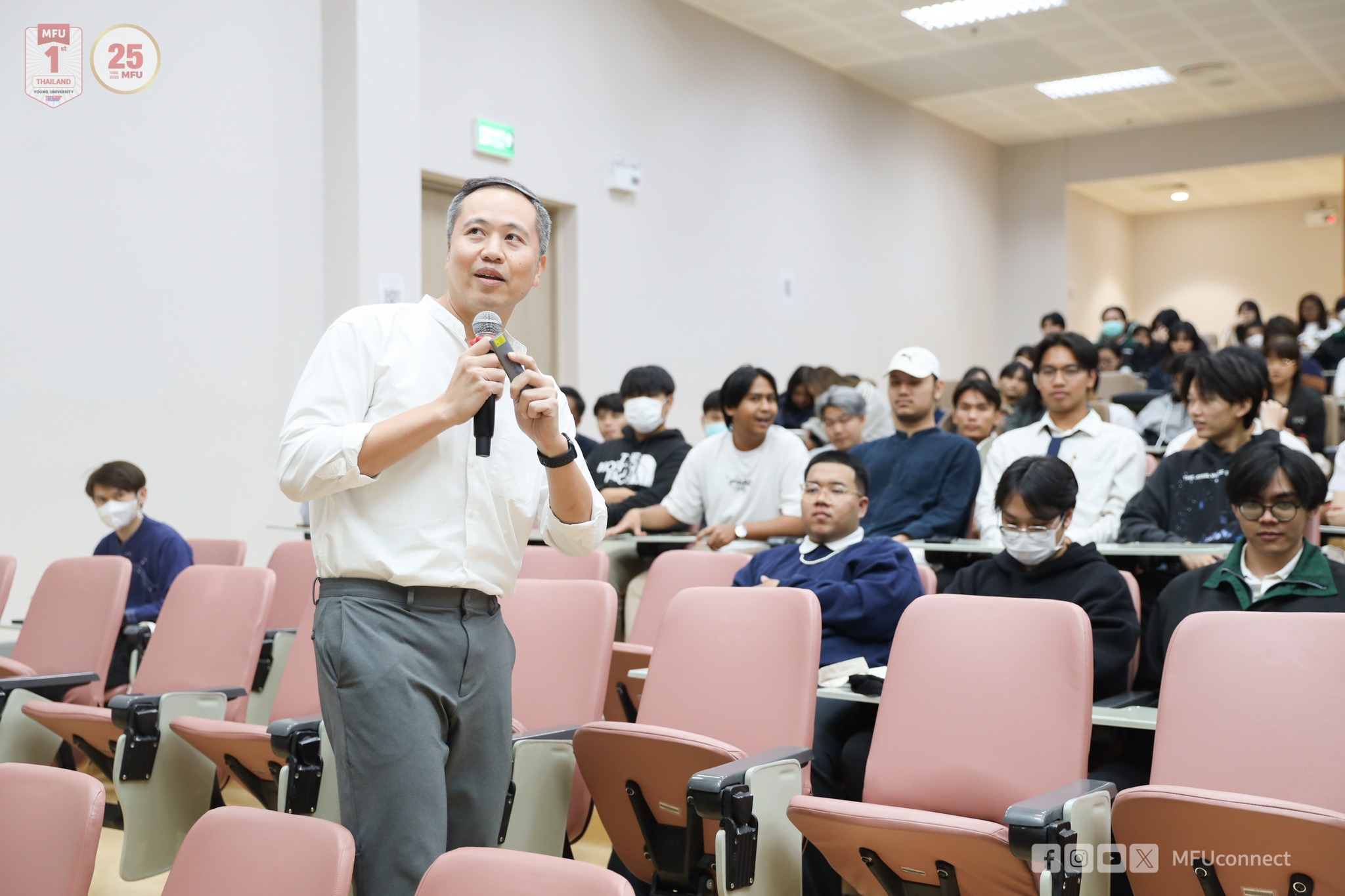 เมื่อวันศุกร์ที่ 9 กุมภาพันธ์ 2567 มหาวิทยาลัยแม่ฟ้าหลวง (มฟล.) โดย ส่วนจัดหางานและฝึกงานของนักศึกษา จัดกิจกรรมอบรม "เตรียมพร้อมสู่โลกอาชีพยุคใหม่ด้วย AI" (Ready for the New-Age Career with AI) เป็นส่วนหนึ่งของกิจกรรมเตรียมความพร้อมให้แก่นักศึกษาในรายวิชาสหกิจศึกษาและฝึกประสบการณ์วิชาชีพ เพื่อหวังเป็นแนวทางในการ Upskill-Reskill ก่อนออกไปฝึกปฏิบัติงานและสำเร็จการศึกษา โดยมี อาจารย์ ดร.พฤทธิ์ พุฒจร อาจารย์ประจำสาขาวิชาเทคโนโลยีมัลติมีเดียและการสร้างภาพเคลื่อนไหว สำนักวิชาเทคโนโลยีสารสนเทศ มฟล. เป็นวิทยากร จัดอบรมในรูปแบบออนไลน์และออนไซต์ ณ ห้องประชุมประดู่แดง 1 อาคารพลเอกสำเภา ชูศรี (E4) มีนักศึกษาให้ความสนใจลงทะเบียนเข้าร่วมกิจกรรมออนไซต์มากกว่า 300 คน ทั้งนักศึกษาเตรียมฝึกปฏิบัติงานและนักศึกษาที่สนใจการทำงานด้วย Gen AI ซึ่งเป็นทักษะการทำงานในยุคใหม่ที่หลายคนให้ความสนใจว่าจะประยุกต์ใช้ Gen AI เพื่อช่วยในการเรียนหรือการทำงานได้อย่างไร