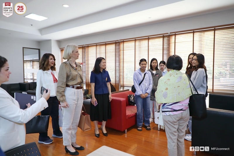 ผู้ช่วยศาสตราจารย์ ดร.มัชฌิมา นราดิศร อธิการบดีมหาวิทยาลัยแม่ฟ้าหลวง (มฟล.) พร้อมด้วยคณะผู้บริหารมหาวิทยาลัยให้การต้อนรับคณะเอกอัครราชทูต (สตรี) ต่างประเทศ ประจำประเทศไทย ได้แก่ เอกอัครราชทูตสาธารณรัฐโคลอมเบีย H. E. Mrs. Ana Maria Prieto Abad, เอกอัครราชทูตสาธารณรัฐปานามา H.E. Ms. Itzel Karina Chen Chan, เอกอัครราชทูตราชอาณาจักรเบลเยียม H.E. Mrs. Sibille de Cartier d'Yves, เอกอัครราชทูตสาธารณรัฐฟิลิปปินส์ H.E. Mrs. Millicent Cruz Paredes, เอกอัครราชทูตสาธารณรัฐตุรกี H.E. Mrs. Serap Ersoy, และเอกอัครราชทูตสาธารณรัฐกัวเตมาลา H.E. Mrs. Shirley Dennise Aguilar Barrera เนื่องในโอกาสเดินทางศึกษาดูงานจังหวัดเชียงราย และมหาวิทยาลัยแม่ฟ้าหลวง เมื่อวันที่ 30 พฤศจิกายน 2566