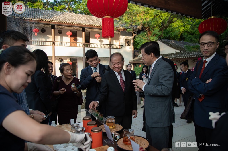 ศาสตราจารย์พิเศษ ดร. วันชัย ศิริชนะ นายกสภามหาวิทยาลัยแม่ฟ้าหลวง (มฟล.) ผู้ช่วยศาสตราจารย์ ดร.มัชฌิมา นราดิศร อธิการบดี และผู้บริหาร ให้การต้อนรับเอกอัครราชทูตสาธารณัฐประชาชนจีนประจำประเทศไทย นายหาน จื้อเฉียง (H.E. Mr. Han Zhigiang) พร้อมด้วยภริยา มาดามหวัง ฮวน (Mrs. Wang Huan) กงสุลใหญ่จีนประจำเชียงใหม่ นายเฉิน ไห่ผิง (Mr. Chen Haiping) เจ้าหน้าที่สถานเอกอัครราชทูตฯ และสถานกงสุลใหญ่ฯ ณ อาคารวันชัย ศิริชนะ เมื่อวันที่ 1 ธันวาคม 2566