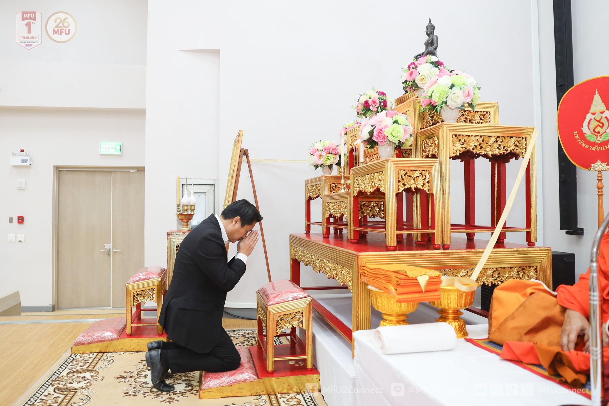 ในการนี้ ผศ.สุชิน กฤตลักษณ์วงศ์ คณบดีสำนักวิชานิติศาสตร์ เป็นประธานในพิธี พร้อมด้วยคณาจารย์ นักศึกษานิติศาสตร์ และเจ้าหน้าที่สำนักวิชา พร้อมกัน ณ สถานที่จัดพิธีในเวลา 09.00 น. จากนั้นประธานในพิธีจุดธูปเทียนบูชาพระรัตนตรัย จุดธูปเทียนเครื่องทองน้อยหน้าพระรูปพระเจ้าบรมวงศ์เธอพระองค์เจ้ารพีพัฒนศักดิ์ กรมหลวงราชบุรีดิเรกฤทธิ์ เจ้าหน้าที่นำอาราธนาศีล ประธานสงฆ์ให้ศีล เจ้าหน้าที่อาราธนาพระปริตร พระสงฆ์ 10 รูป สวดพระพุทธมนต์ ประธานและผู้ร่วมพิธีถวายไทยธรรม ประธานทอดผ้าไตรบังสุกุล พระสงฆ์สดับปกรณ์ จากนั้นพระสงฆ์อนุโมทนา ประธานกรวดน้ำ เป็นอันเสร็จพิธี