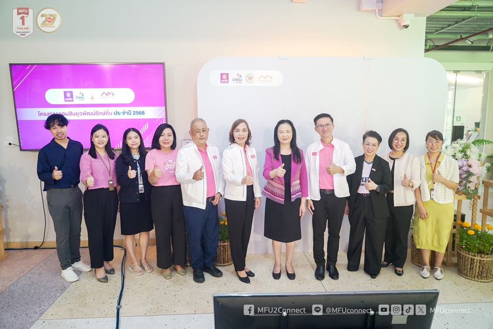เมื่อวันที่ 6 ตุลาคม 2568 ส่วนจัดการทรัพย์สินทางปัญญาและนวัตกรรม มหาวิทยาลัยแม่ฟ้าหลวง จัดกิจกรรมนำเสนอโครงการย่อยและพิธีปิด “โครงการออมสินยุวพัฒน์รักษ์ถิ่น ประจำปี 2568” ณ ห้อง M4U ชั้น 2 อาคาร Education Park มหาวิทยาลัยแม่ฟ้าหลวง และรูปแบบออนไลน์ผ่านระบบ Zoom โดยมี ศาสตราจารย์ ดร.สุจิตรา วงศ์เกษมจิตต์ รองอธิการบดี มหาวิทยาลัยแม่ฟ้าหลวง เป็นประธานกล่าวต้อนรับ และ ดร.ชลิดา ธนินกุลภรณ์ หัวหน้าส่วนจัดการทรัพย์สินทางปัญญาและนวัตกรรม กล่าวรายงานการดำเนินงาน พร้อมด้วยคุณอังคนางค์ พรมคำ รักษาการผู้อำนวยการธนาคารออมสินภาค 9 ร่วมกล่าวเปิดงานและมอบเกียรติบัตรให้แก่กลุ่มชุมชนที่เข้าร่วมโครงการ จำนวน 5 กลุ่ม