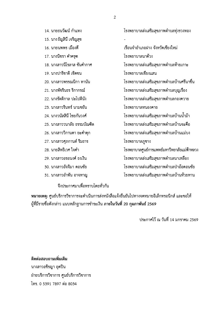 ประกาศ ณ วันที่ 14 มกราคม 2569