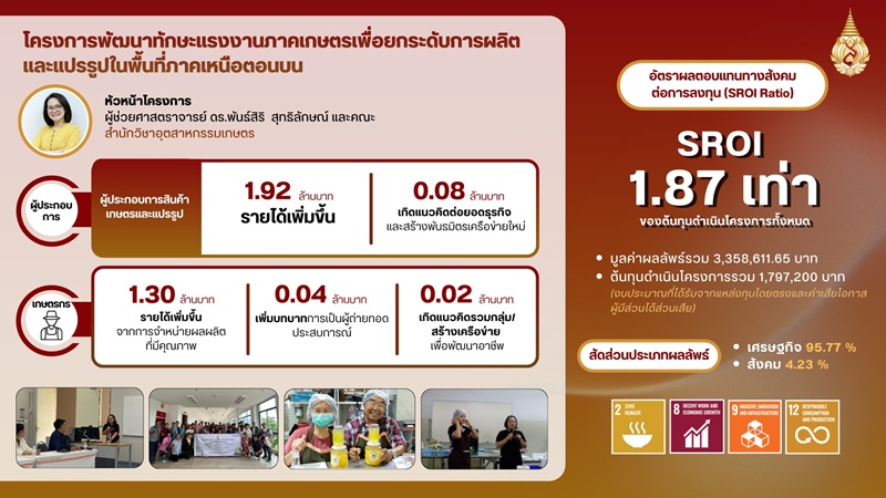 Mae Fah Luang University (MFU) has advanced the systematic assessment of economic and social impacts generated by its research and academic service projects through the adoption of the Social Return on Investment (SROI) framework.