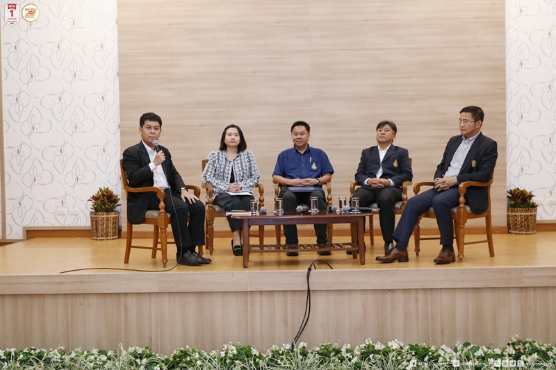 The academic panel discussions brought together distinguished experts from a wide range of disciplines,including Assistant Professor Dr. Thanikul Chandra, Dean of the School of Social Innovation, MFU; Assistant Professor Dr. Apisom Intralawan, School of Management, MFU; Mr. Pattana Sitthisombat, Chairman of the Committee for the Quadrangle Economic Development Project, Chamber of Commerce of the 10 Northern Provinces; and Associate Professor Dr. Thawatchai Apidechkul, School of Health Science, MFU. The session was moderated by Acting Sub-Lieutenant Seksarn Anandasirikiate, Senior Researcher at the Institute of Strategic and International Studies.