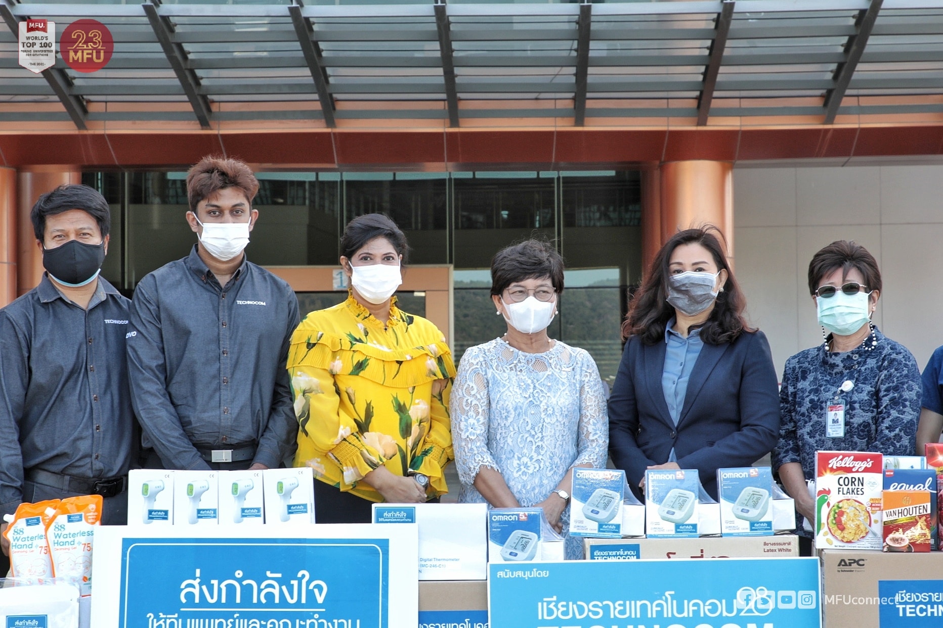 เมื่อวันที่ 7 พฤษภาคม 2564 รองศาสตราจารย์ ดร.ชยาพร วัฒนศิริ อธิการบดี มฟล. พร้อมด้วย ดร.ประภัสสร ดำรงกุล อึ้งวณิชยพันธ์ รองอธิการบดีและรักษาการแทนผู้อำนวยการศูนย์การแพทย์ฯ นางสาวประชิด ศราธพันธุ์ หัวหน้าฝ่ายการพยาบาล รพ.ศูนย์การแพทย์ฯ ร่วมรับมอบสิ่งของบริจาค จากห้างหุ้นส่วนจำกัด เชียงรายเทคโนคอม โดย คุณระวี อุปรา กรรมการผู้จัดการ และทีมงาน ร่วมบริจาคอุปกรณ์สนับสนุนทางการแพทย์และสิ่งของตามรายการต่อไปนี้